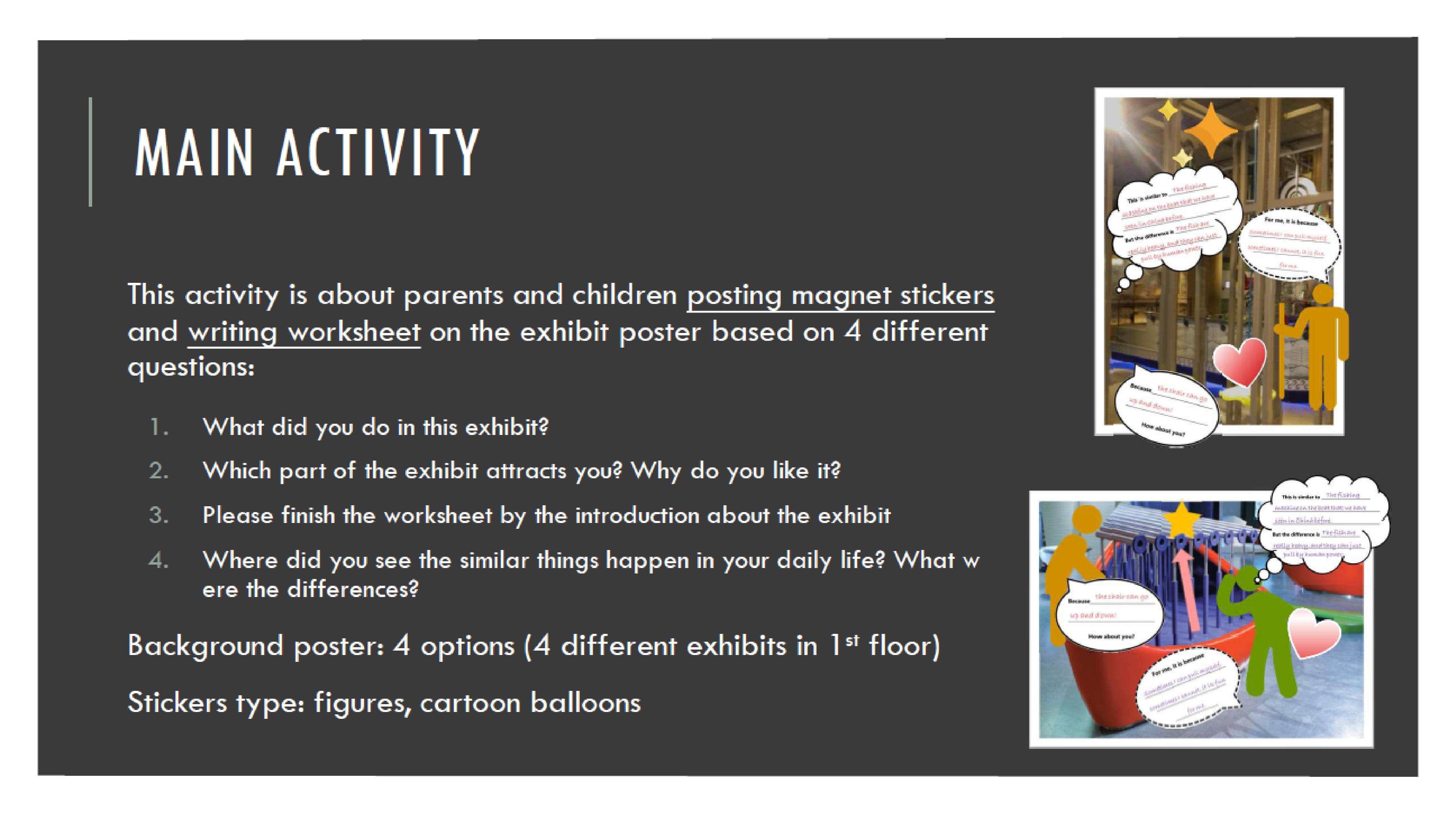 Eight families participated in the study, and the activity was documented through video recordings and post-visit interviews. While many families already had a strong sense of science relevance in daily life, the activity helped children become more aware of scientific principles behind the exhibits, and parents discovered new ways to engage their children in science talk. The findings suggest that verbal guidance could further enhance the learning process, and recommend developing a digital version of the activity for broader educational use in museums.