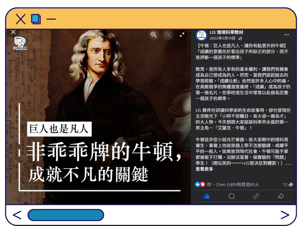 LIS 夥伴在研讀科學家的生命故事時,卻也發現在主流眼光下「小時不受矚目,長大卻一展長才」的大人物,今天想跟大家談談科學界永遠的第一男主角-「艾薩克.牛頓」!
