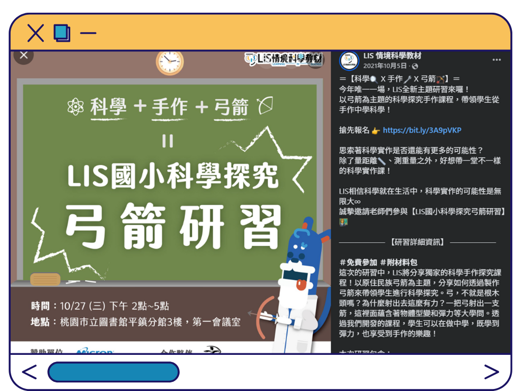 誠摯邀請老師們參與【LIS國小科學探究弓箭研習】👩🏫